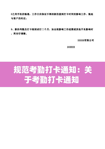 为了进一步加强公司考勤管理,提高工作效率,确保公司各项工作的顺利进行,现就规范考勤打卡工作发布如下通知。
