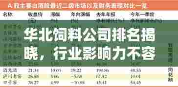 在畜牧业日益发展的背景下,饲料产业作为支撑其发展的关键环节,亦呈现出蓬勃生机,华北地区作为我国的畜牧业重要基地,饲料公司的表现尤为引人关注,本文将深入探讨华北地区的饲料公司排名及其行业影响力。