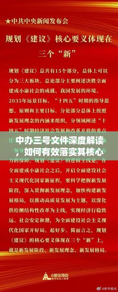 在当前社会发展新形势下,我们面临着前所未有的机遇与挑战,为了更好地适应时代发展的需要,中央办公厅发布了中办3号文件,为我们指明了前进的方向,本文将围绕“落实中办3号”这一主题,探讨如何在实际工作中贯彻落实这一重要文件。