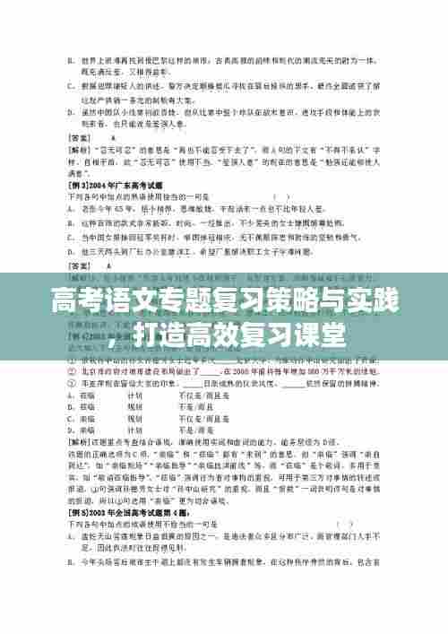 面对高考的挑战,语文专题复习课堂显得尤为重要,有效的复习不仅能帮助学生巩固知识,还能提升他们的应试技能,本文将探讨语文高考专题复习课堂的重要性、策略和实践方法。