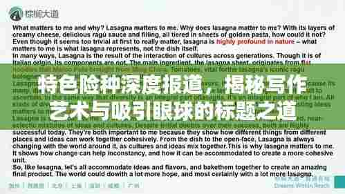 转载请注明来自中蚨科技,本文标题:《特色险种深度报道,揭秘写作艺术与吸引眼球的标题之道》