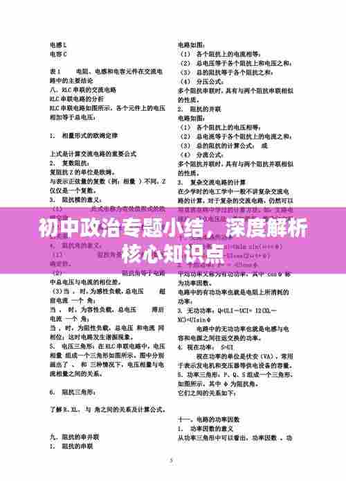 在初中阶段,政治教育对于学生树立正确的世界观、人生观和价值观具有至关重要的作用,本文旨在就初中政治专题进行小结,概括主要内容,并阐述其重要性。