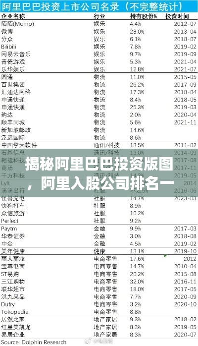 阿里巴巴入股公司的排名及其投资领域反映了其投资策略和未来发展方向,通过不断投资布局,阿里巴巴将进一步加强其在各行业的地位,实现持续、稳健的发展,我们也期待阿里巴巴在未来带来更多创新性的投资和合作,推动各行业的进步和发展。