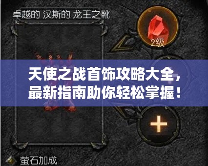 在天使之战这个奇幻的世界里,首饰不仅是装饰,更是提升角色战力的重要装备,本文将为大家带来最新的天使之战首饰攻略,帮助大家了解如何获取、强化以及搭配首饰,提升角色实力。