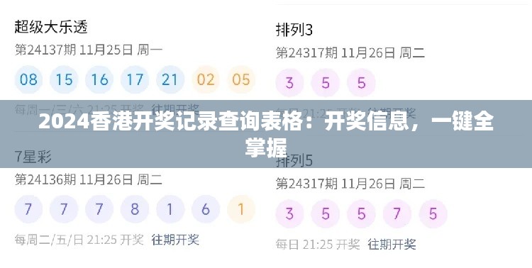 在研究某些特定的记录数据时,香港的记录资料常常被作为重要的参考对象。本文旨在为您提供一份详尽的研究性说明文,内容涉及“2024香港开奖记录查询表格:开奖信息,一键全掌握”这一主题,以便您能够更全面地了解这一领域的信息。请注意,“开奖”在此文中指的是非赌博性质的、如抽奖等活动中的获奖记录。