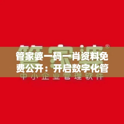 在这个信息化和数字化快速发展的时代背景下,“管家婆一码一肖资料免费公开:开启数字化管理新篇章”这部文献资料的出现,为传统行业提供了一个全新的视角来审视和改革其管理模式。该文献资料主要涉及如何通过数字化手段对企业进行管理,使其在信息时代能够更好地适应市场需求,提高自身竞争力。本文将对这部文献资料进行详细阐述,以便读者更好地理解和掌握其中的内容。