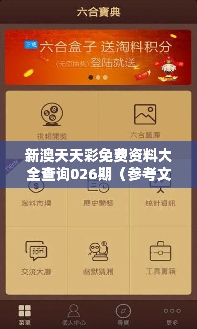 新澳天天彩免费资料大全查询026期(参考文献)是一个涉及多个领域的综合文献资料库,提供了一系列免费的信息资源,旨在帮助用户深入研究和获取所需知识。这些资料不涉及任何赌博或彩票相关的内容,而是涵盖了科学、技术、艺术和经济等多个领域,以促进学术与教育的进一步发展。