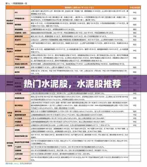 在众多水泥上市公司中,以下几只股票因其业绩优良、市场表现活跃而成为热门水泥股: