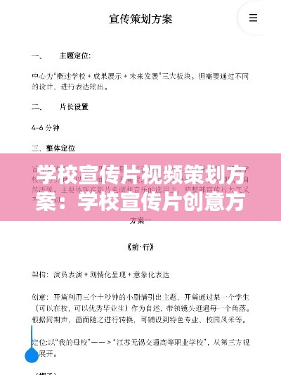 转载请注明来自中蚨科技,本文标题:《学校宣传片视频策划方案:学校宣传片创意方案范本 》